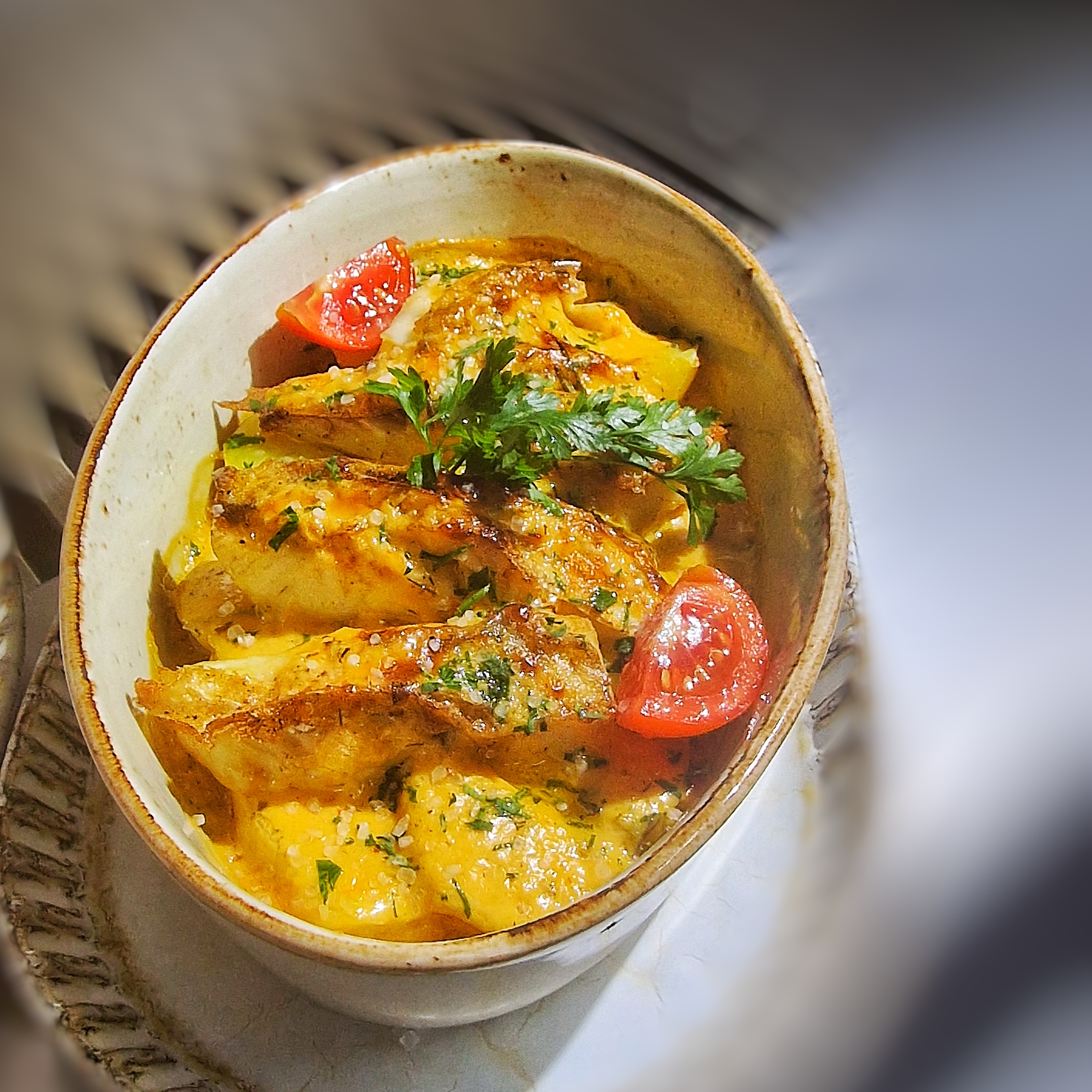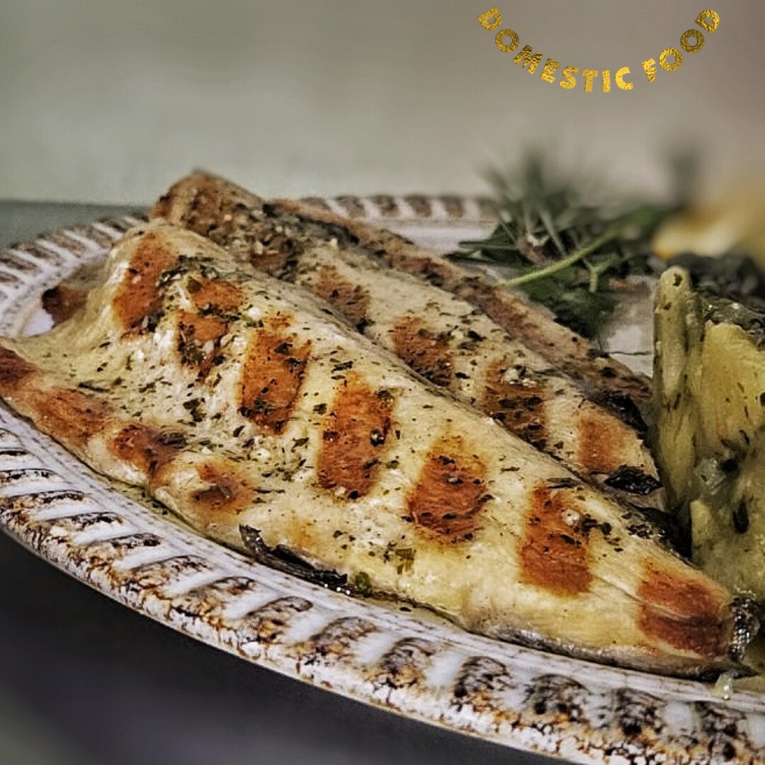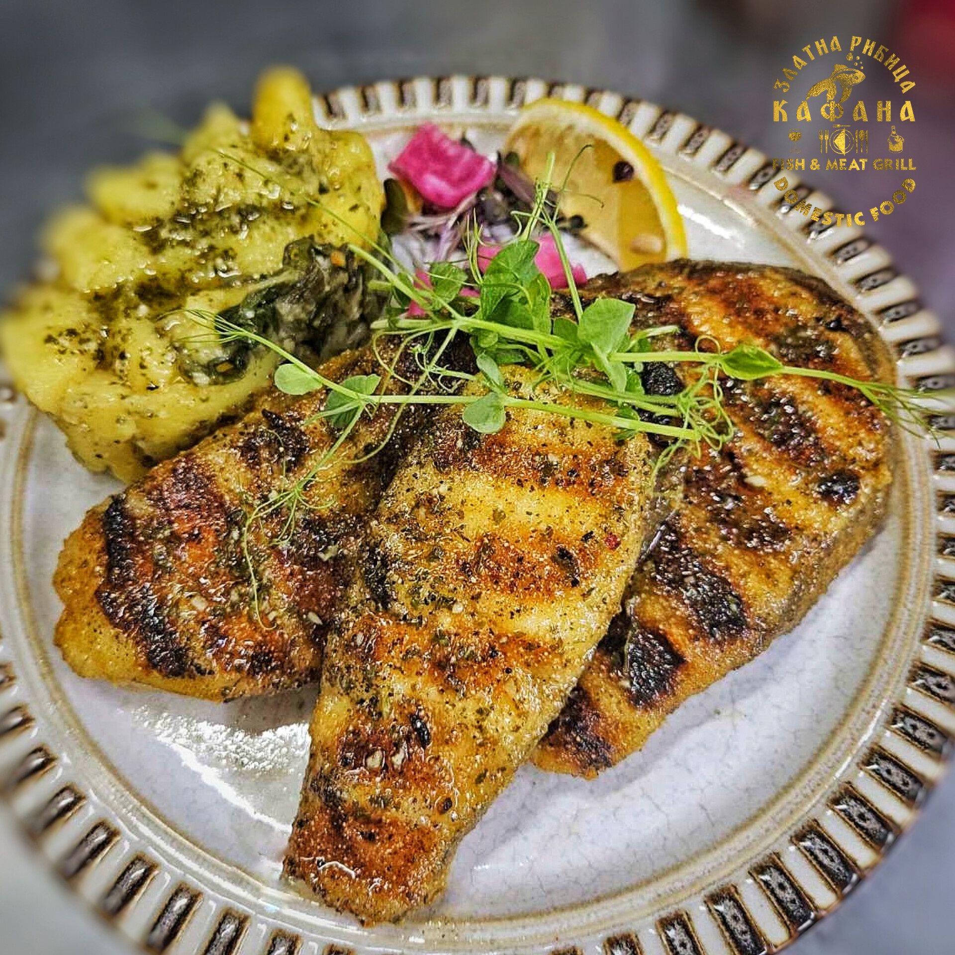 Rečna riba belog mesa prve klase, blago odimljena hladnim bukovim dimom, grilovana na roštilju. Blago prelivena marinadom od belog luka, peršuna, limuna i biljnog ulja. Vrlo sočna i ukusna. Servira se na pireu od blitve i krompira, sa dodatkom svežeg limuna.